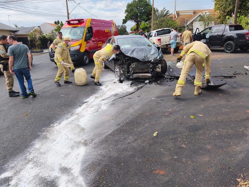 No final da manhã deste sábado (23), um acidente de grandes proporções aconteceu no cruzamento da Rua Men De Sá com a Rua Pernambuco, na região central de Marechal Cândido Rondon.