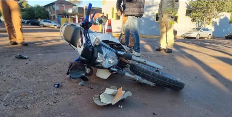 A colisão envolveu um veículo Corsa, de cor prata, e uma motocicleta Yamaha Fazer.