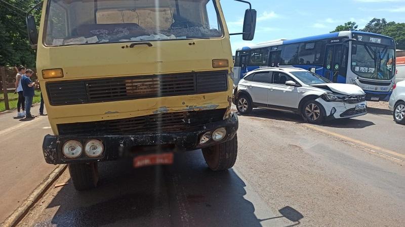 Segundo informações obtidas no local pela reportagem, o acidente aconteceu quando o Fiat seguia pela avenida e a condutora parou na pista para fazer uma conversão à esquerda momento que foi atingida na traseira pelo Nivos, o caminhão que seguia atrás do Nivos atingiu a traseira do carro, o condutor de 33 anos foi socorrido por uma equipe do Corpo de Bombeiros e encaminhado ao hospital da Unimed em Toledo com ferimentos considerados moderados.