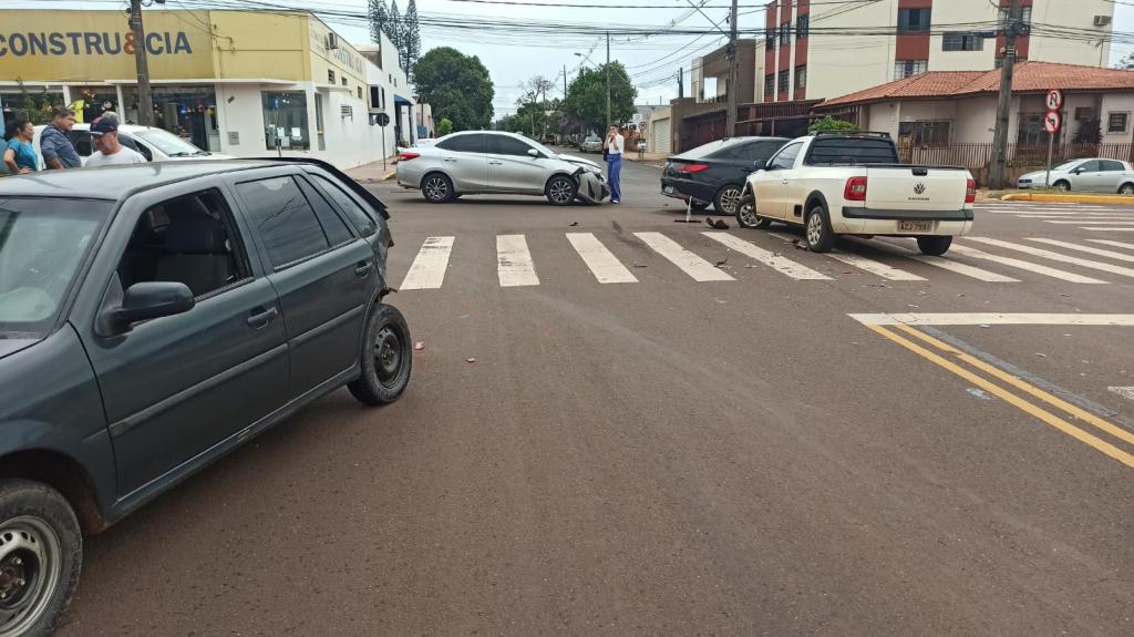 Um acidente sem vítimas envolvendo três veículos foi registrado na tarde desta segunda-feira no cruzamento da rua Almirante Tamandaré com avenida Maripá no centro de Toledo e envolveu um Volkswagen Gol, um Saveiro e um Toyota Yaris.