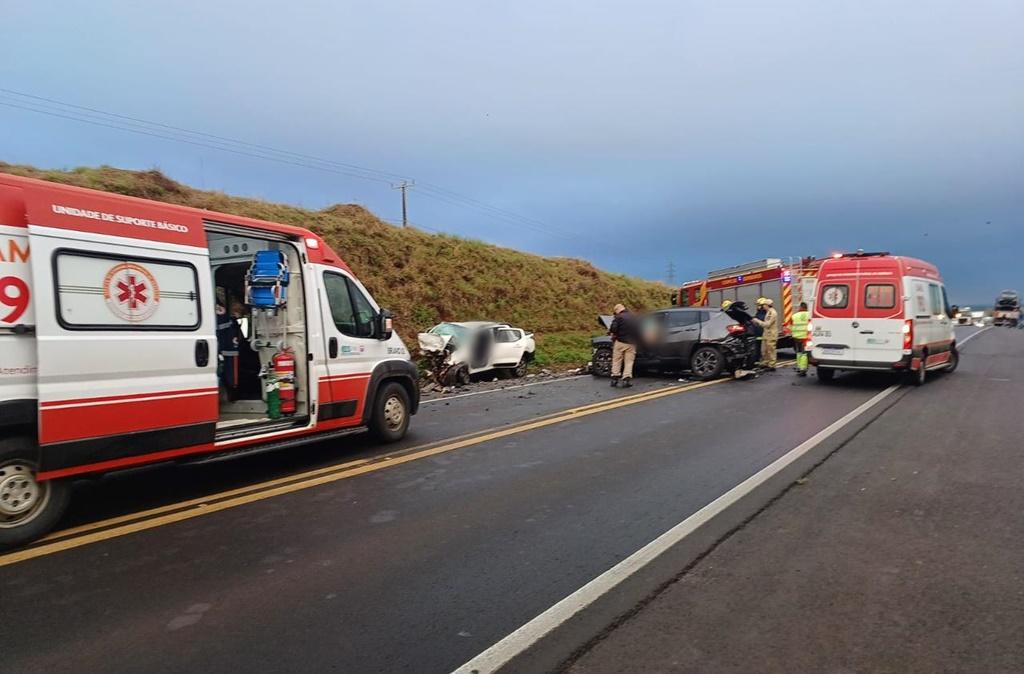 De acordo com informações do Samu, a colisão teve forte impacto e as vítimas foram atendidas pelas Unidades de Suportes Avançado e Básica do Samu, além do Corpo de Bombeiros. No Jeep estavam um casal – um homem de 64 anos que sofreu ferimentos moderados e foi encaminhado ao Novo Hospital Santa Tereza e a mulher de 61 anos. Ela não resistiu aos ferimentos e morreu no local. Trata-se de Terezinha Aparecida Haracemiw.