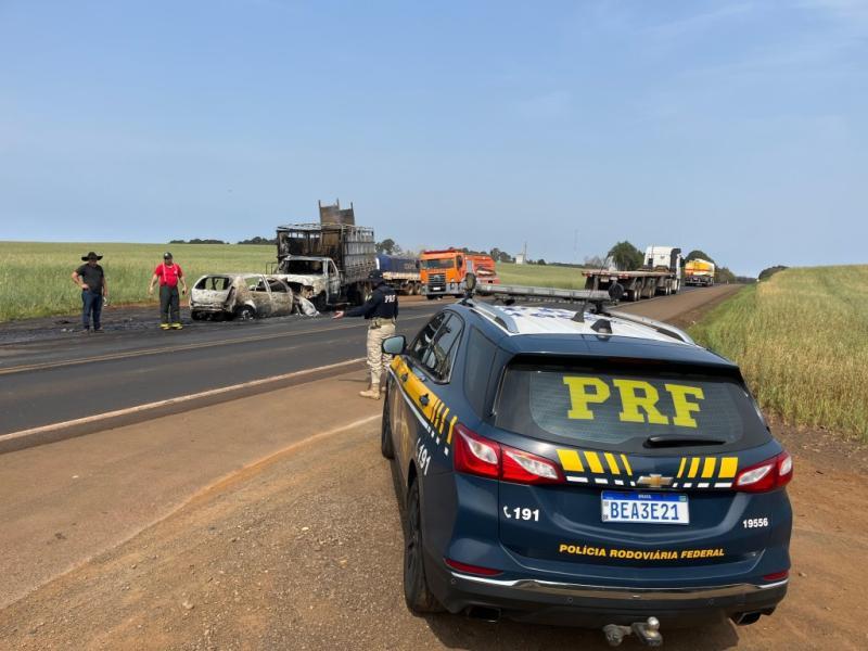Segundo informações da Polícia Rodoviária Federal (PRF), os veículos envolvidos foram um Sandero preto, com placas de Imbituva, um caminhão M. Benz branco, com placas de Campo Mourão, e um caminhão Ford 4000, também branco, com carroceria tipo Boiadeiro, com placas de Guarapuava.