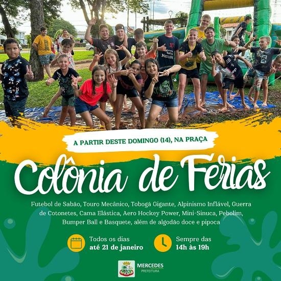 Para proporcionar momentos de alegria e diversão para as crianças durante o período de férias, a Secretaria de Assistência Social de Mercedes lança no próximo domingo (14) o Projeto "Colônia de Férias".