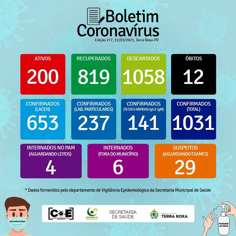 Desde o início da pandemia o Terra Roxa já teve 1031 casos confirmados, o município no último senso em 2020 contava com 17.522 moradores.