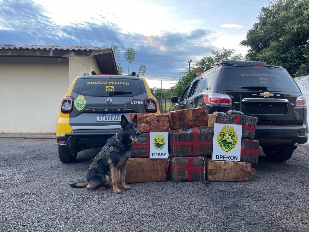 Policiais militares do pelotão de operações com cães do BPFRON - Batalhão de Polícia de Fronteira, em ação conjunta com a RPA de Entre Rios do Oeste, receberam uma denúncia de que havia uma movimentação de pessoas numa área de mata e que elas estariam trazendo drogas do Paraguai.