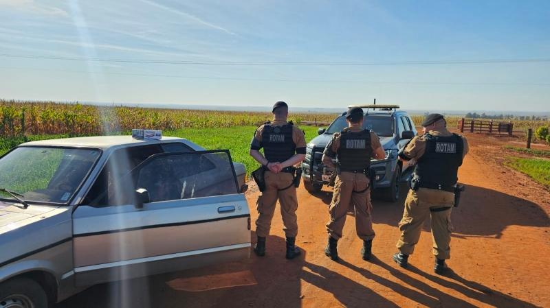 Conforme as informações, a equipe policial se deslocava para Terra Roxa, quando avistou o Corcel com carga no banco traseiro e com uma lona cobrindo.