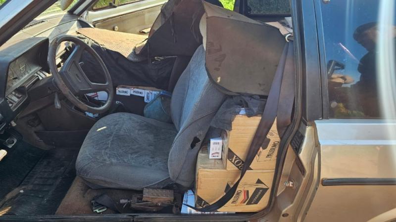 Os policiais realizaram a abordagem ao carro, sendo localizado no interior do veículo cerca de 20 caixas de cigarros oriundos do Paraguai.