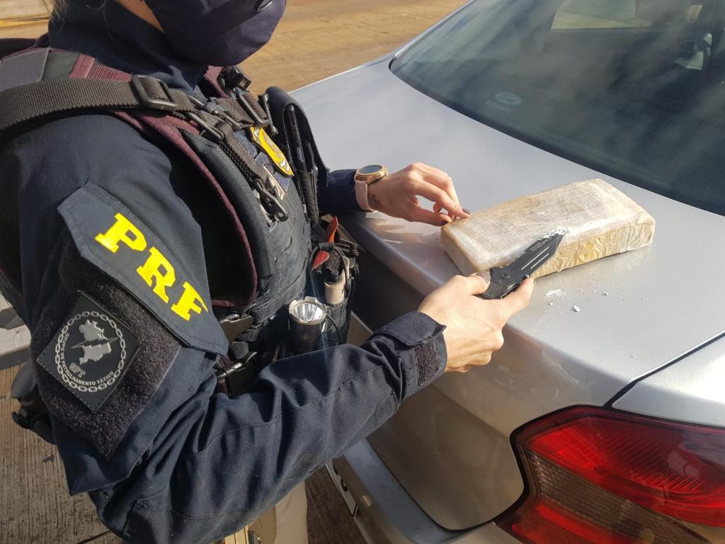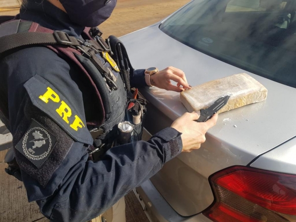 A Polícia Rodoviária Federal apreendeu nesta manhã (31) cerca de 0,96 quilogramas de cocaína escondida em veículo alugado.