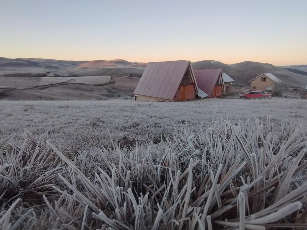 O frio segue forte no Rio Grande do Sul nesta terça-feira (27): cidades da Região da Serra registraram temperaturas próximas de 0ºC e começaram o dia cobertas de geada. Foi o caso de Bento Gonçalves, Vacaria e Cambará do Sul.