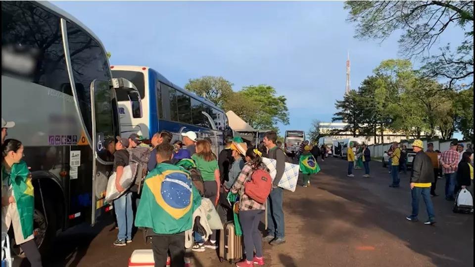 Manifestantes saem de Cascavel, no Oeste do Paraná, e seguem para Brasília no Distrito Federal, nesta segunda-feira (14).
