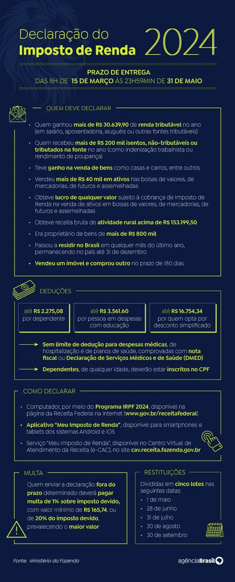 A consulta poderá ser feita na página da Receita Federal na internet. Basta o contribuinte clicar em “Meu Imposto de Renda” e, em seguida, no botão “Consultar a Restituição”. Também é possível fazer a consulta no aplicativo da Receita Federal para tablets e smartphones.