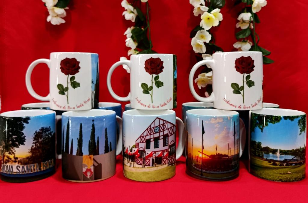 Pensando na data comemorativa, a loja lançou canecas personalizadas com imagens de Nova Santa Rosa, reunindo registros que retratam a beleza e a história do município. Entre os destaques, estão pontos conhecidos da cidade, paisagens urbanas e símbolos que fazem parte do dia a dia da população, reforçando o sentimento de pertencimento e valorização local.
