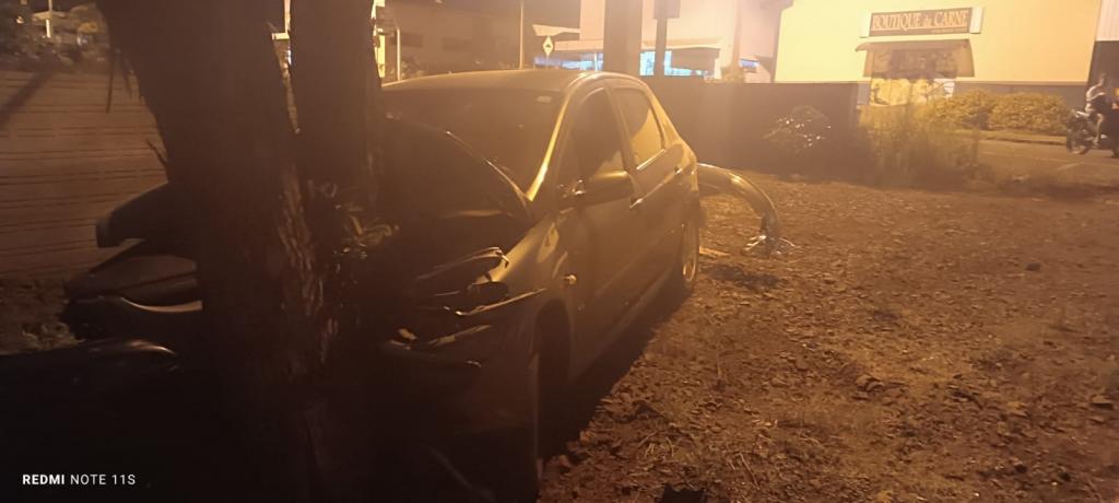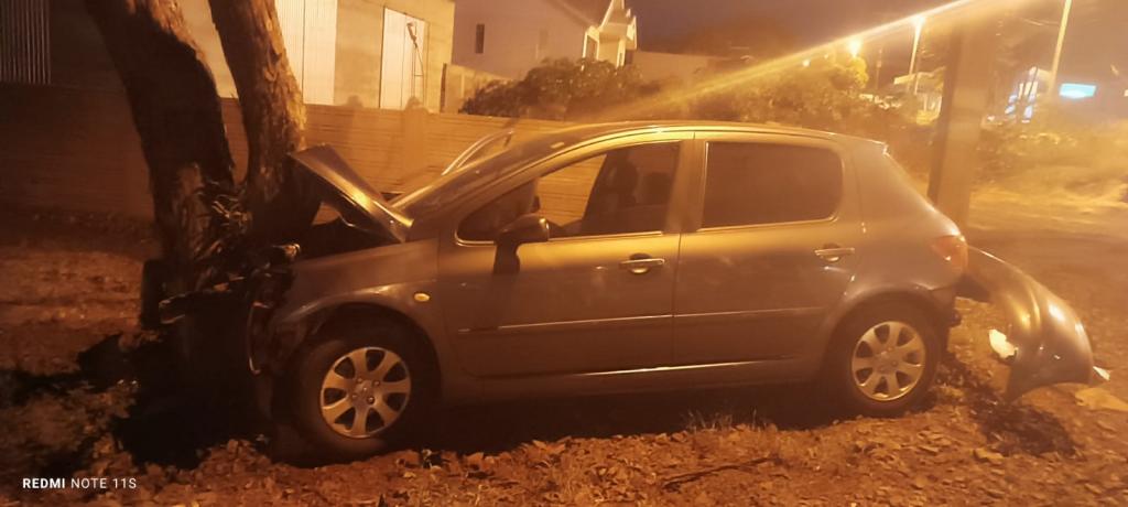 Um veículo colidiu contra uma árvore na avenida de Novo Sarandi, distrito de Toledo, na noite deste domingo.
