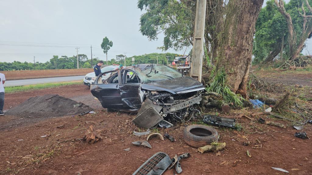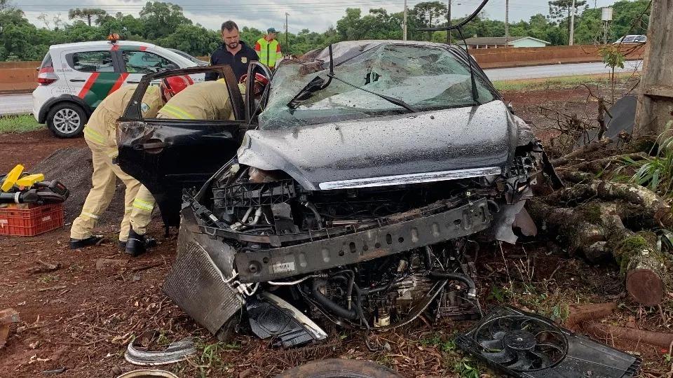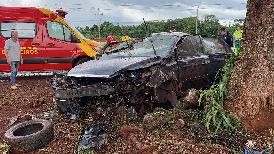 As informações são de que o carro saiu da pista, capotou diversas vezes e atingiu um poste. O veículo parou com as quatro rodas no chão, mas bastante danificado.
