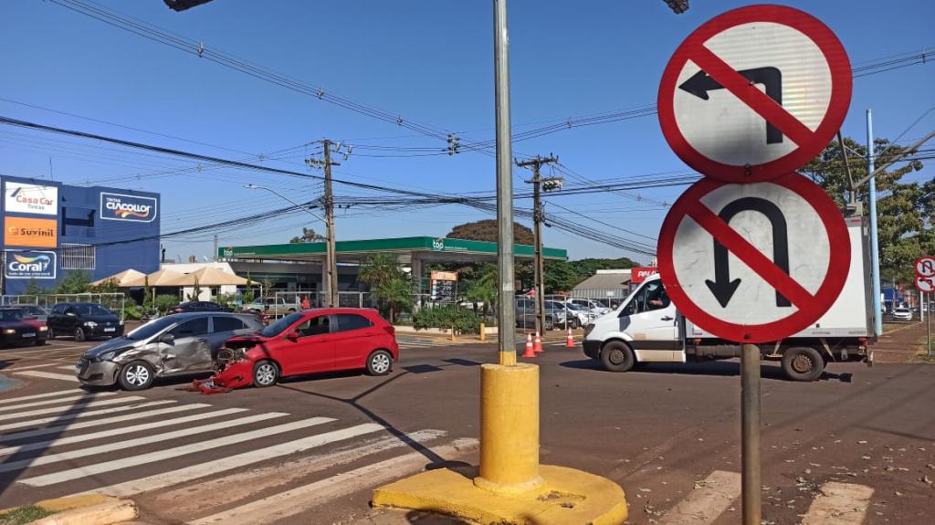 Informações dão conta de que a batida entre os veículos aconteceu embaixo do semáforo, quando o condutor do Ford Ka realizou uma conversão proibida à esquerda, para acessar a Rua Santos Dumont. O HB20 seguia pela Avenida na direção contrária.