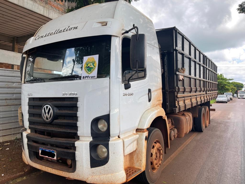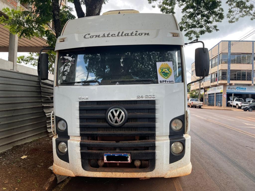 O caminhão Volkswagen foi abordado nesta segunda-feira por policiais militares do BPFRON - Batalhão de Polícia de Fronteira e durante a verificação da documentação do veículo foi constatado que o caminhão estava com placas falsas.