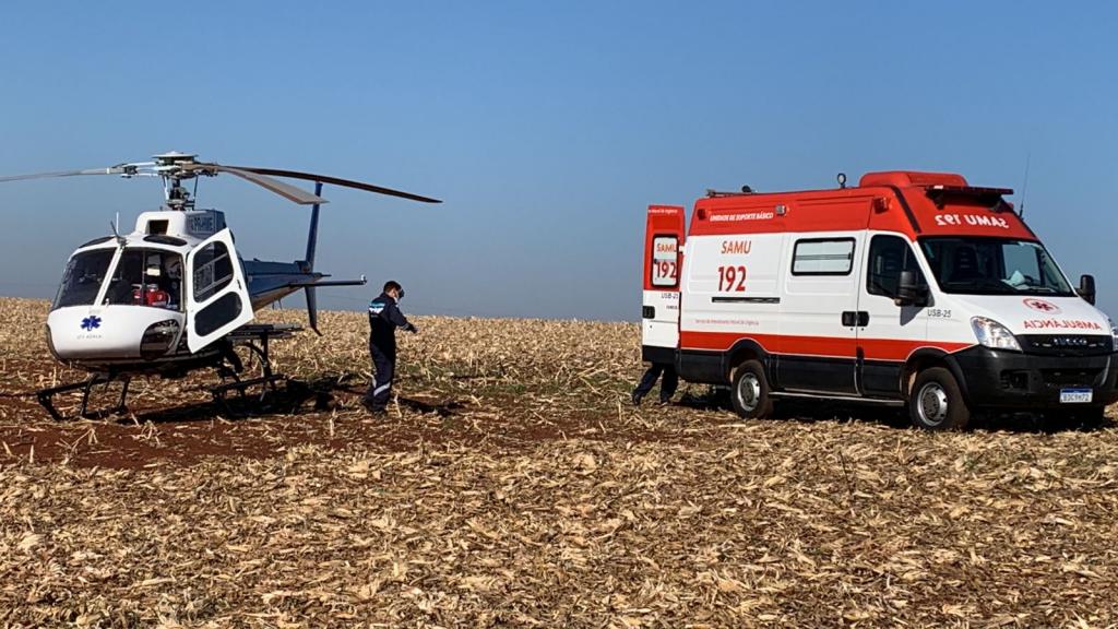 O helicóptero do Paraná Urgência foi acionado e o elemento transferido para um hospital da região.