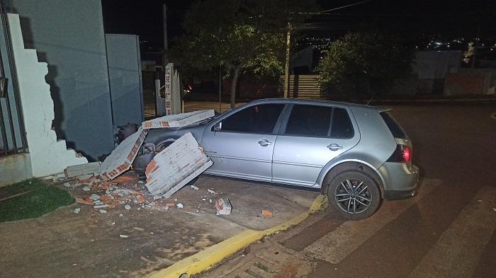 Na madrugada de hoje (05) no Bairro São Franscisco, o Volkswagen Golf com placas Mercosul trafegava pela Rua Matias Fhur e o condutor ao chegar na rotatória entrou pela contramão, perdeu o controle da direção e atingiu o muro de uma residência.