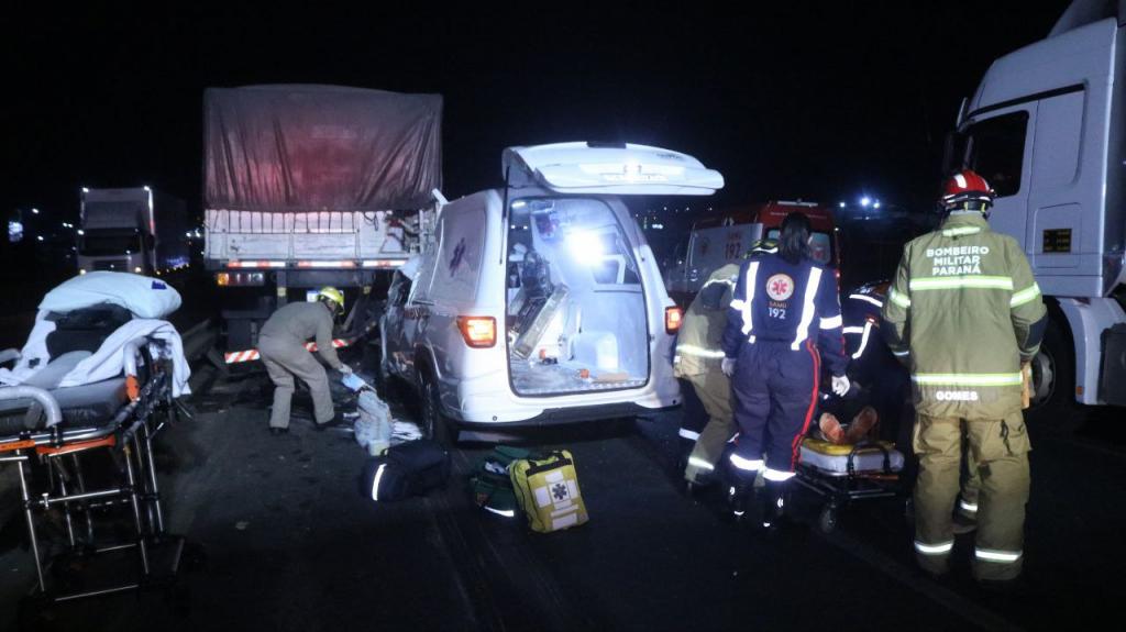 Um grave acidente envolvendo uma ambulância e um caminhão chocou a região de Ponta Grossa na noite desta quarta-feira (11).