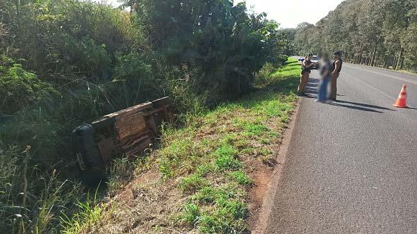 Conforme informações obtidas no local pela nossa reportagem, um homem de 38 anos conduzia um veículo Fiat Strada e, em uma curva, perdeu o controle da direção, sendo que ao frear, o veículo rodou na pista, invadiu a pista contrária e caiu dentro de uma valeta às margens da rodovia. A Fiat ficou tombada no local.