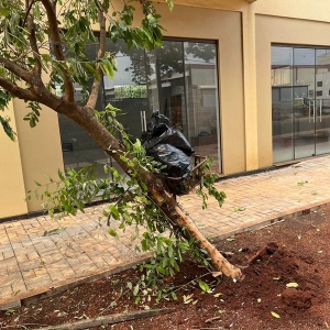 Segundo relato de populares, o condutor perdeu o controle da direção do utilitário subiu na calçada e colidiu na árvore, parando alguns metros a frente, por pouco o carro não bate no blindex de uma sala comercial.