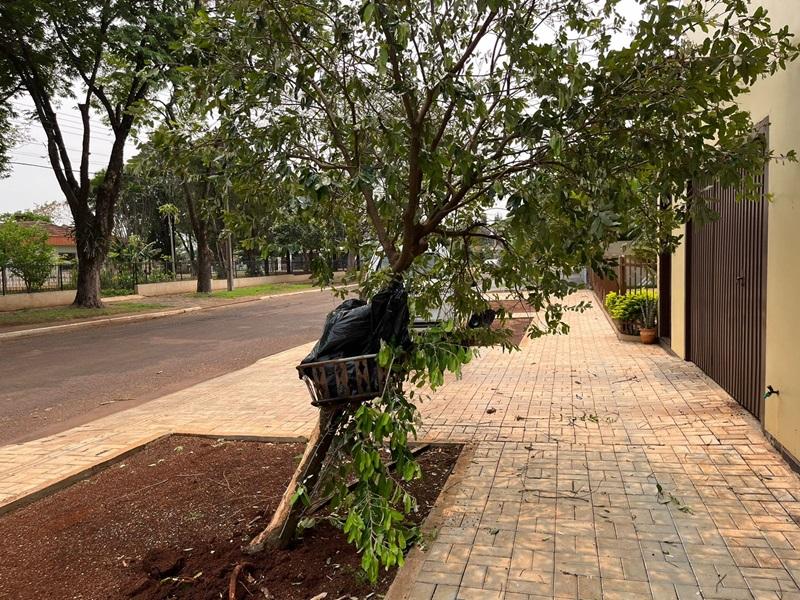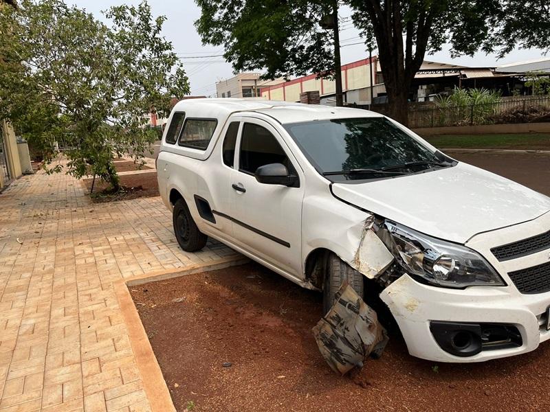 Um Chevrolet Montana, conduzido por um rapaz morador de Nova Santa Rosa colidiu contra uma árvore que estava em cima da calçada na madrugada deste domingo na Rua Toledo.