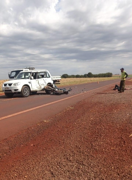 Um motociclista, morador de Novo Sarandi ficou ferido após ser fechado por um veículo Pajero Mitsubishi no final da manhã desta terça-feira na rodovia PR 239, KM 60, entre Novo Sarandi e Vila Nova.
