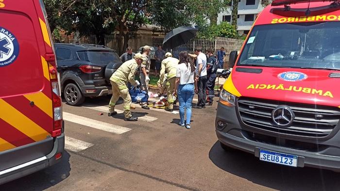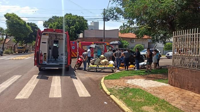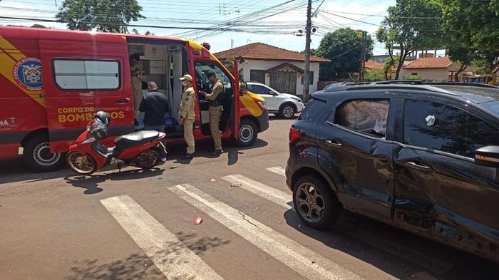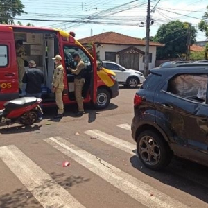 Em Toledo, nesta terça-feira, uma motoneta Biz 125 cilindradas conduzida por uma moça de 27 anos que tinha na garupa uma jovem de 24 anos trafegava pela Rua Formosa e na esquina da General Alcides Etchgoyen no bairro Jardim La Salle colidiu contra um veículo Ford Ecosport.