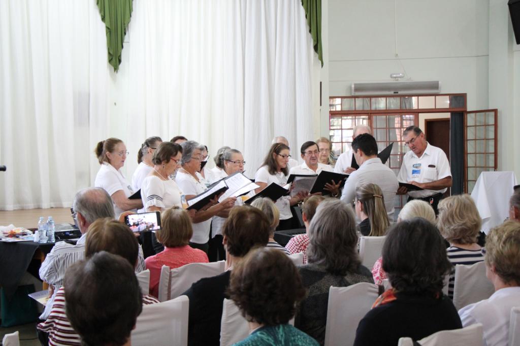 APRESENTAÇÃO CULTURAL – O coral da terceira idade foi uma das atrações que encantaram os participantes da conferência. Eles apresentaram três músicas, resultado das aulas oferecidas pela Secretaria de Assistência Social. O coral conta, no momento, com a participação de 15 idosos do grupo Unidos Venceremos, da sede do município, que se reúnem semanalmente para as aulas.