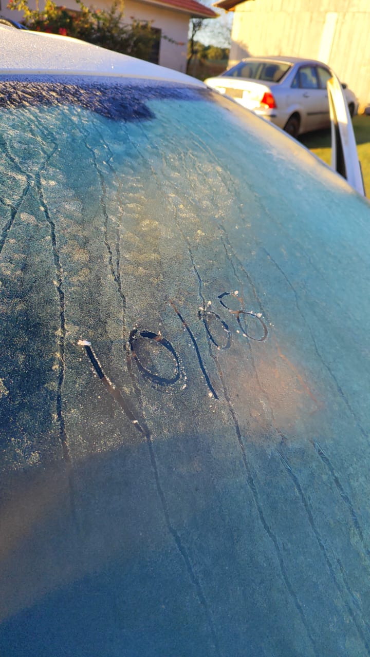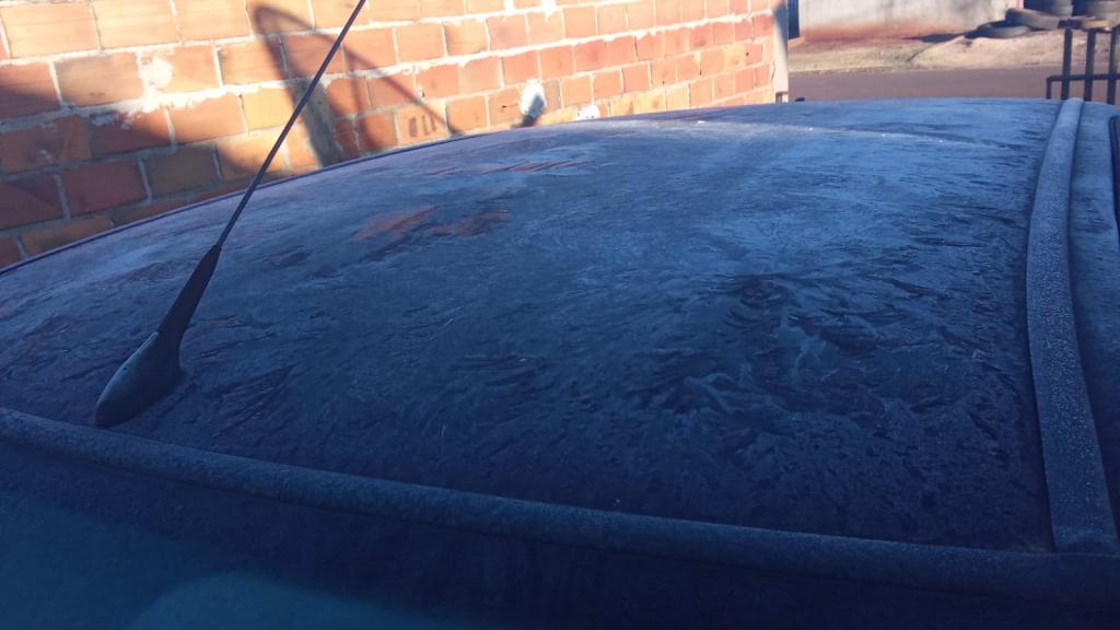 O Claúdio da Borracharia mandou imagens na manhã de hoje em sua residência, localizada nas proximidades da Coamo, o veículo com uma camada considerável de geada.