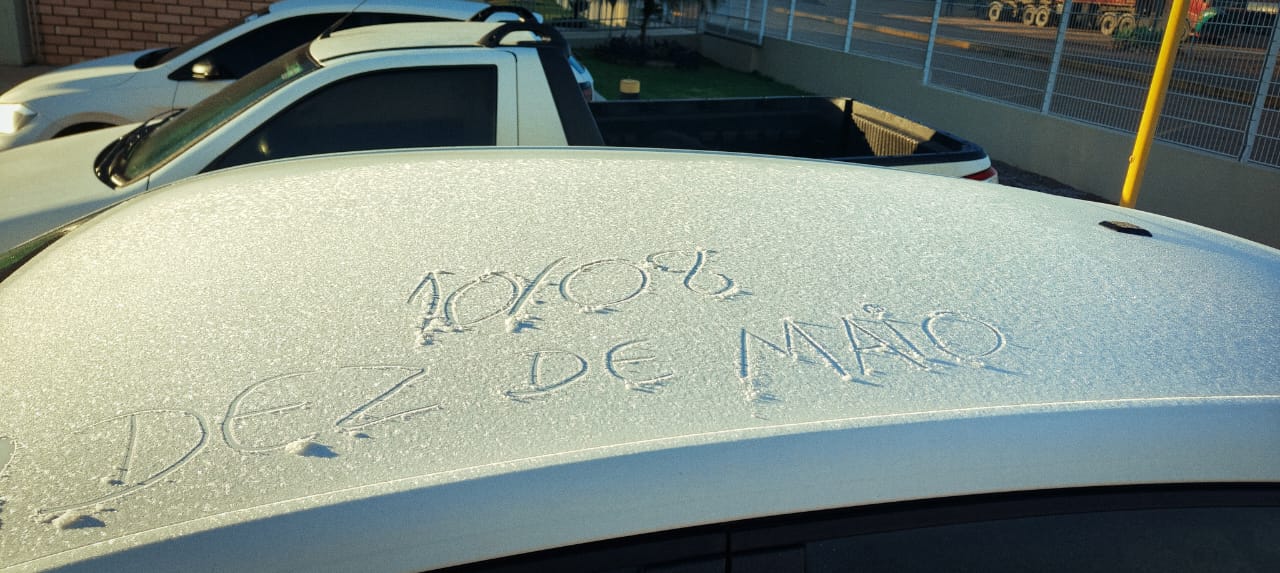 Na saída para Maripá, também houve registro de internautas com o veículo e uma camada de geada sobre o teto.