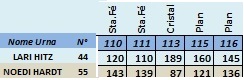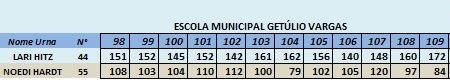 Acompanhe a tabela abaixo com os votos em cada urna: