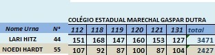 Lari Hitz teve 58,85% dos votos válidos, 3.471 votos, o candidato do prefeito Norberto, Noedi Hardt teve, 41,15%, 2.427 votos, uma diferença de 1.044 votos.