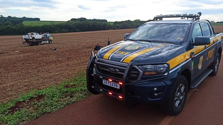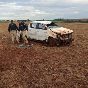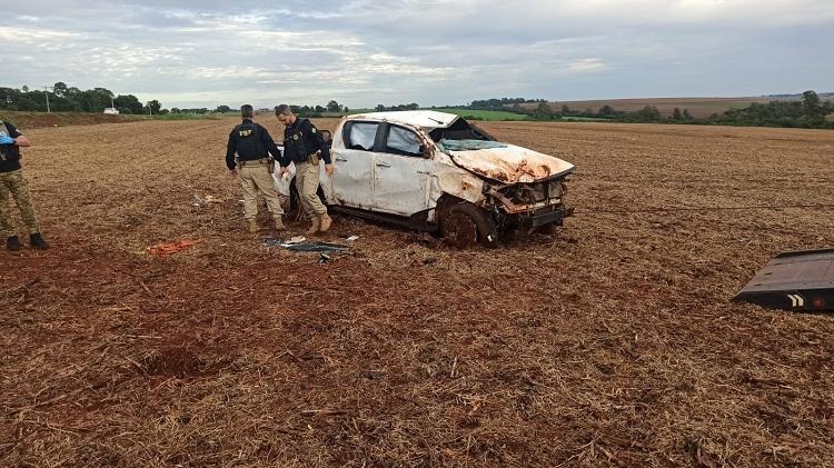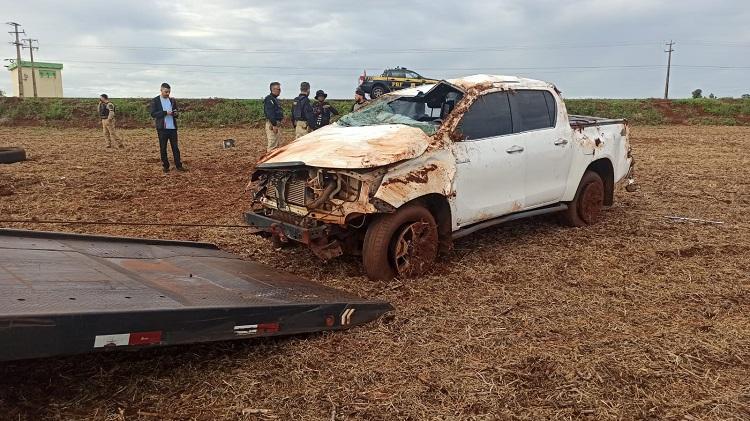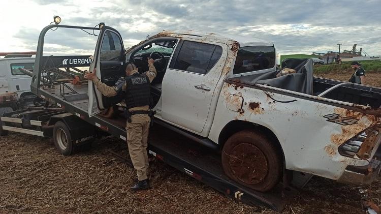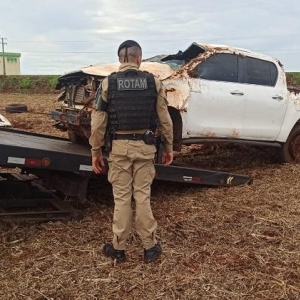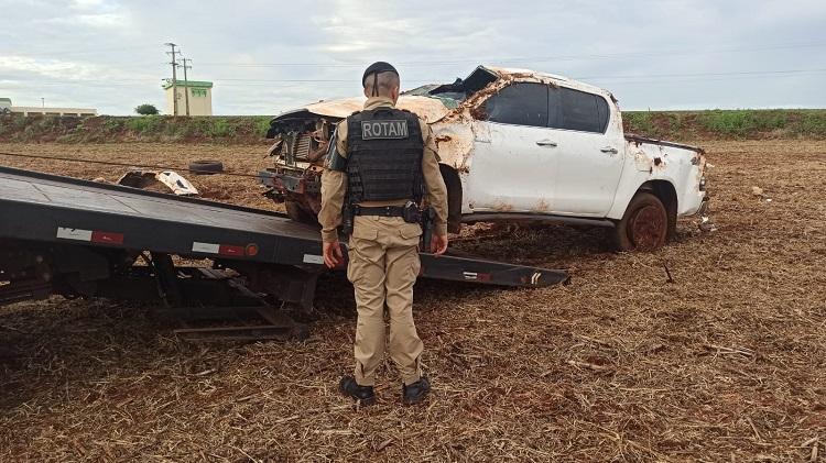 Durante o patrulhamento, os policiais visualizaram a caminhonete em alta velocidade na BR-163, iniciando um acompanhamento tático. Nas proximidades de uma cooperativa, o condutor perdeu o controle do veículo, que saiu da pista e capotou diversas vezes, parando dentro de uma área de terra.