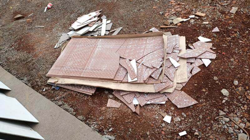 O construtor informou que, quando os funcionários saíram da obra no domingo, haviam deixado as caixas de porcelanato no interior da residência e, na manhã desta segunda-feira (08), duas caixas estavam quebradas foram da casa.