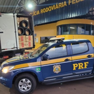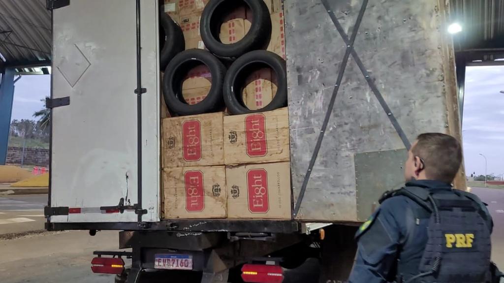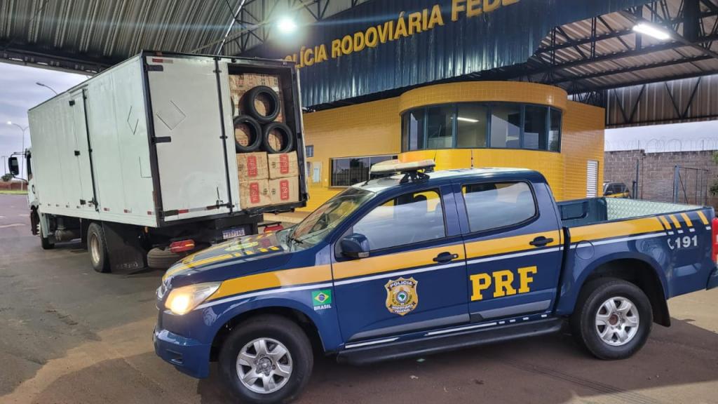 Na madrugada desta sexta-feira (08), a PRF apreendeu um caminhão carregado com cerca de 400 caixas de cigarros contrabandeados.
