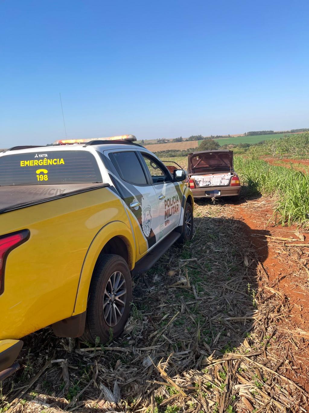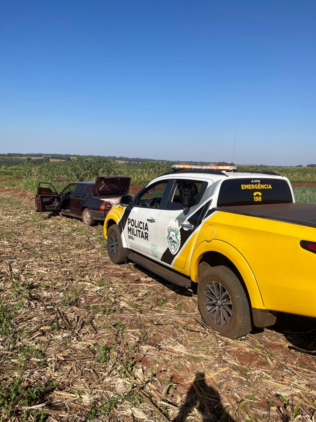 Durante patrulhamento pela zona rural de Nova Santa Rosa na tarde de hoje, segunda-feira, a equipe da Polícia Rodoviária Estadual suspeitou de um veículo Monza que trafegava por uma estrada de chão e ao tentar realizar a abordagem o condutor entrou em uma roça, abandonando o veículo alguns metros a frente, empreendendo fuga a pé e não sendo mais possível localiza-lo em meio a um canavial.