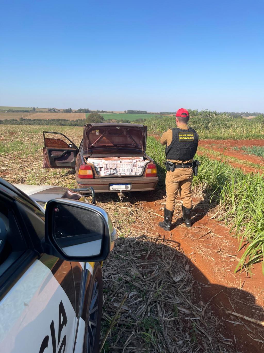 No veículo foram encontrados aproximadamente 15 caixas de cigarros de origem paraguaia (750 pacotes).