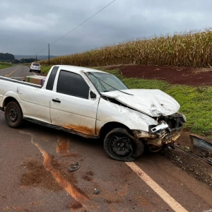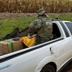 O condutor do utilitário abandonou o carro e contrabando e fugiu em uma lavoura de milho nas proximidades da rodovia, durante a fuga o carro capotou.