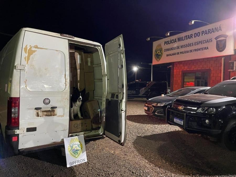 Na quinta-feira (21), no âmbito da Operação Protetor, policiais militares do pelotão de Operações com cães do BPFron - Batalhão de Polícia de Fronteira, durante patrulhamento na BR-163 em Marechal Cândido Rondon, deram voz de abordagem a um veículo Van Fiat/Ducato Maxi.