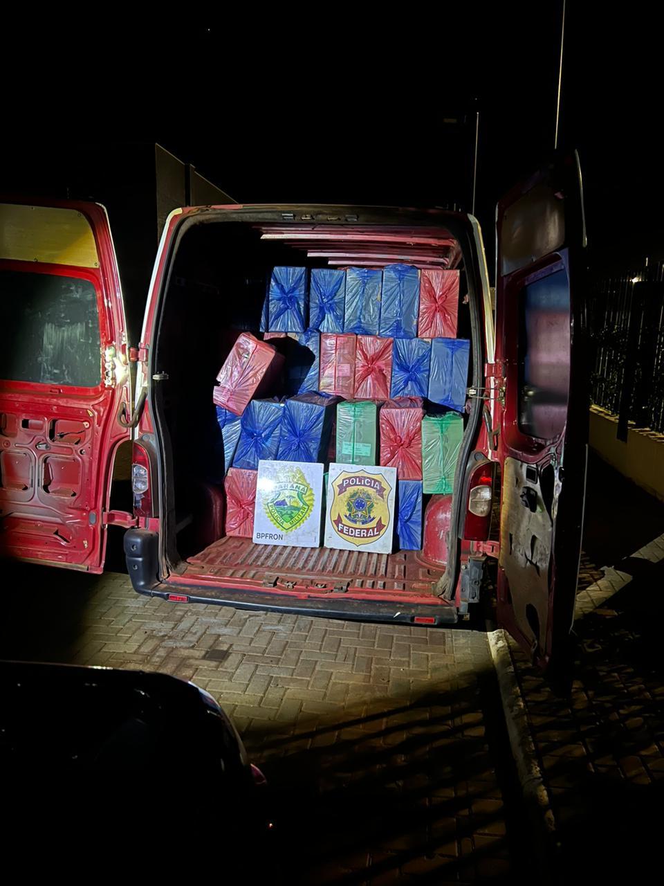 O veículo estava carregado com pacotes de cigarros contrabandeados.