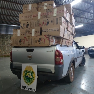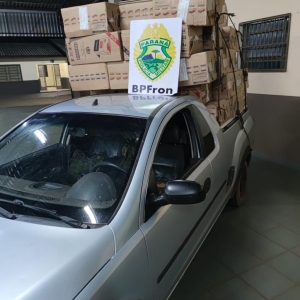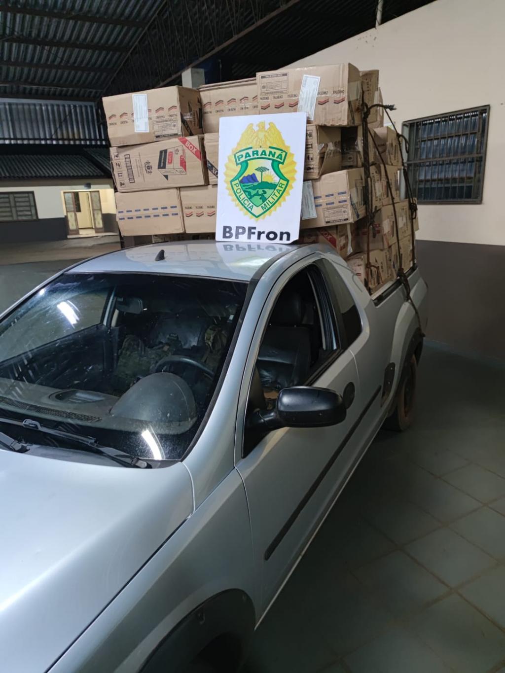 O veículo estava carregado com 2.500 pacotes de cigarros contrabandeados. Os cigarros e o veículo foram encaminhados para a Receita Federal de Guaíra.