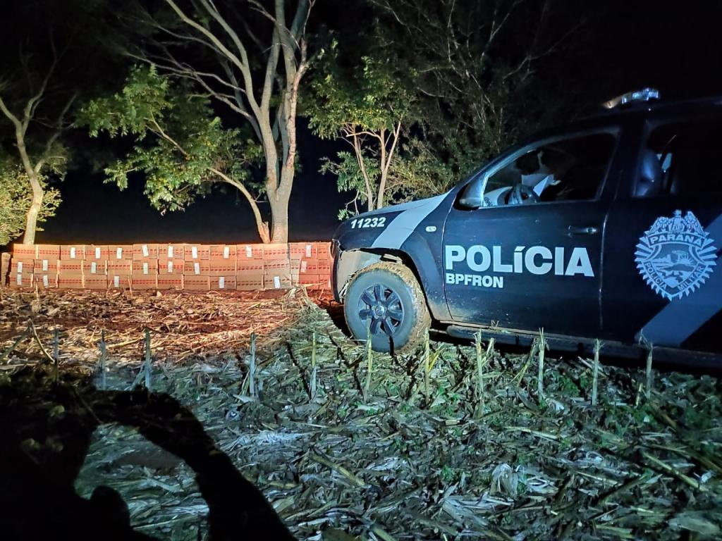 Nas primeiras horas desta madrugada Policiais Militares do BPFRON, em patrulhamento pela área rural de Guaíra, se deparam com rastros de um veiculo adentrando uma plantação, local que comumente utilizado para a prática de transbordo de mercadorias ilícitas de origem estrangeira.