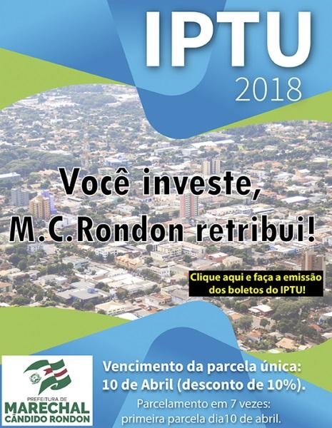 Contribuintes rondonenses que não receberam o carnê do IPTU (Imposto Predial e Territorial Urbano) em suas residências poderão fazer a retirada nos Correios, até o dia 10 de abril. A mesma data é também o prazo final para quem preferir pagar o imposto à vista e receber 10% de desconto. Se o carnê não estiver nos Correios, o contribuinte deverá comparecer ao setor de tributação da prefeitura.
