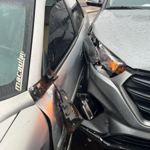 Apesar do impacto, ninguém ficou ferido. Os dois veículos sofreram danos e os seguros foram acionados.
