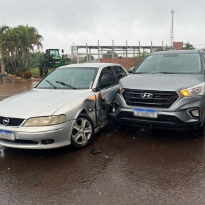 Um acidente de trânsito acinteceu na Avenida Santo Cristo, no centro de Nova Santa Rosa, no fim da manhã desta sexta-feira, dia 20 de junho em frente à rodoviária municipal, enquanto chovia na cidade.