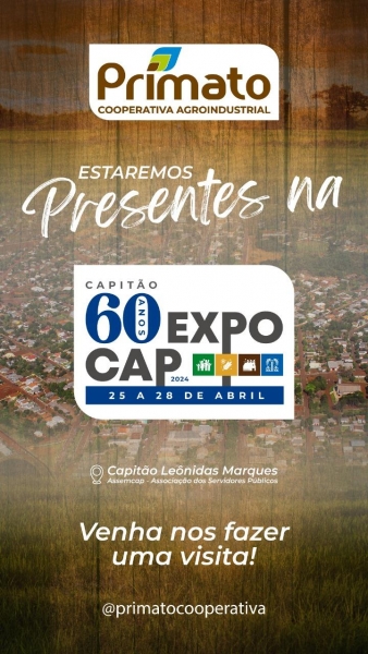 Muito próxima do seu cooperado, a Primato começa sua jornada junto a um importante evento promovido pelo município que é a Expocap, onde a Cooperativa pretende estreitar ainda mais seu relacionamento com seu cooperado. “Além de ser uma boa oportunidade para estarmos junto com nosso cooperado é também um ensejo para mostrarmos para comunidade a forma como atuamos e como o cooperativismo transforma a realidade onde está inserida”, enalteceu o gerente da unidade, Marciano José Facciochi.