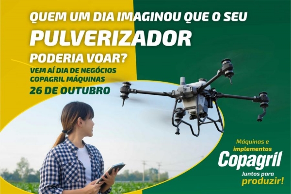 Todos os associados e clientes da Copagril são convidados a participar para conhecer os modelos de drones, bem como vários outros equipamentos que proporcionam mais eficiência nas atividades do campo.