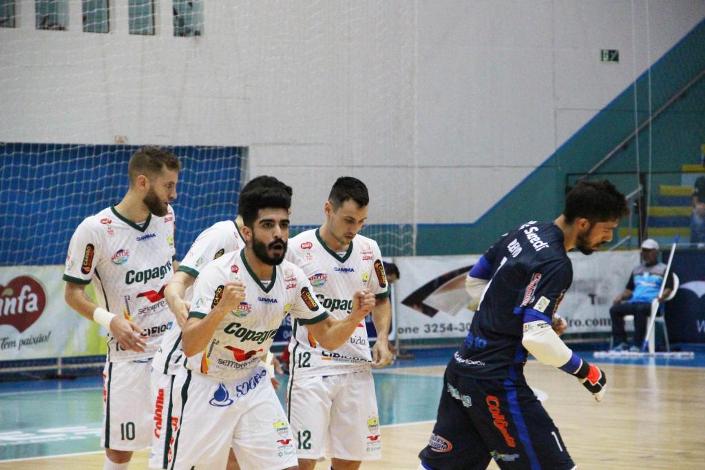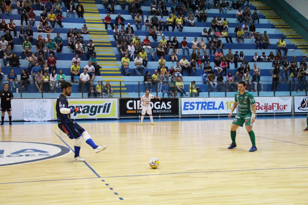 No primeiro tempo, a Copagril Futsal jogou com bastante propriedade diante de sua torcida e abriu o placar aos três minutos, com gol de Jhonny. Aos 14, Jhonny, camisa 14, fez a finta e voltou a marcar. Dois minutos se passaram, Barbosinha recebeu a bola na cobrança de falta e chutou forte de primeira para balançar a rede. Placar parcial Copagril 3x0.