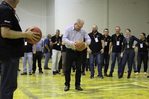 Ao final da palestra, ela conduziu uma atividade prática em quadra, desafiando os grupos participantes a realizarem o Arremesso Livre, como uma forma de promover entre eles o trabalho em equipe e superação.